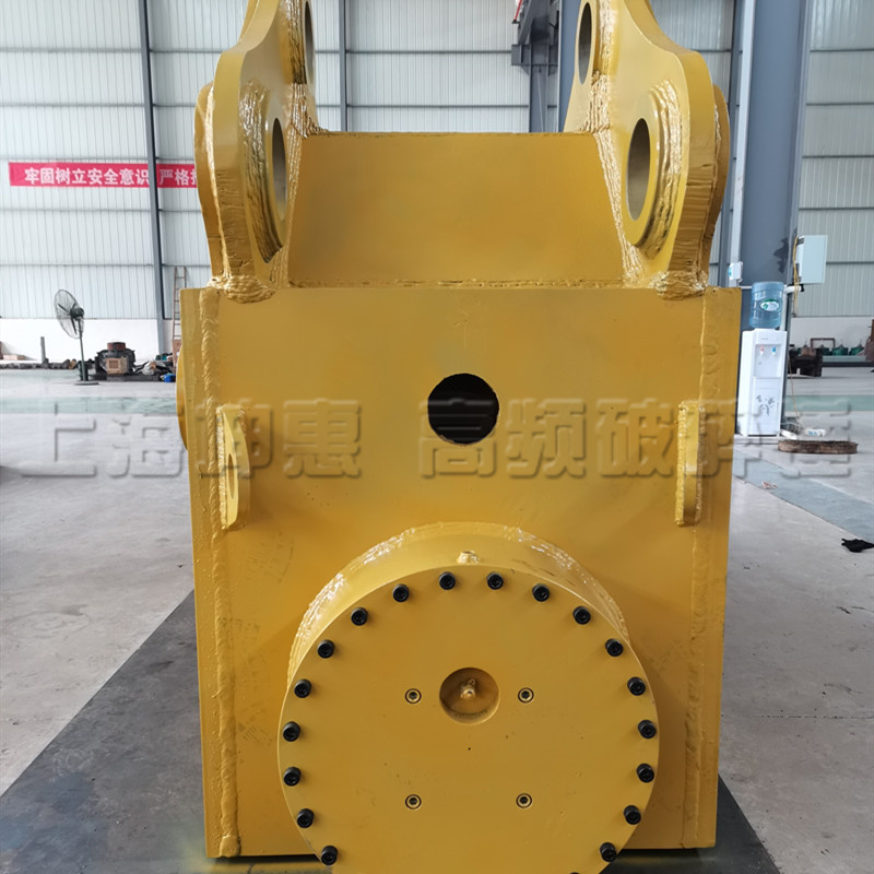 高頻破碎錘作為一種破碎工具,主要利用高速運轉(zhuǎn)產(chǎn)生的破壞力,使目標(biāo)破壞物產(chǎn)生半液化的狀態(tài)來進(jìn)行破壞的。把挖掘機的液壓能量傳遞到液壓馬達(dá)上,馬達(dá)帶動振動盒內(nèi)的偏心齒輪轉(zhuǎn)動,產(chǎn)生離心力,然后通過激振盒將振動傳到斗齒上,從而完成破碎作業(yè)的一個過程。